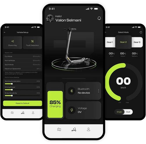 Урд, хойно, хажуу талаас харагдахуйц гэрэлтүүлэгтэй. App холболттой LCD дэлгэц нь хурд, зай, температур, тохиргоог хянах боломжтой.